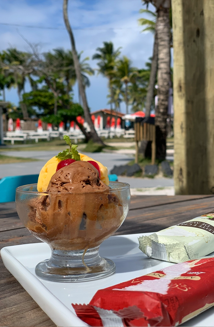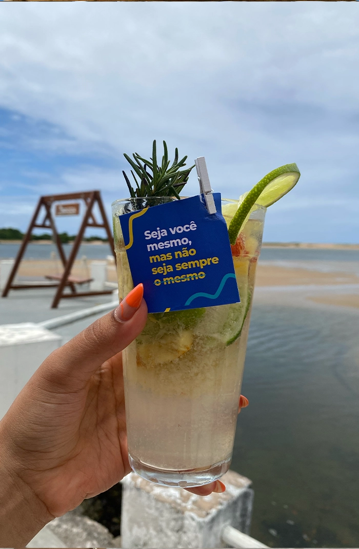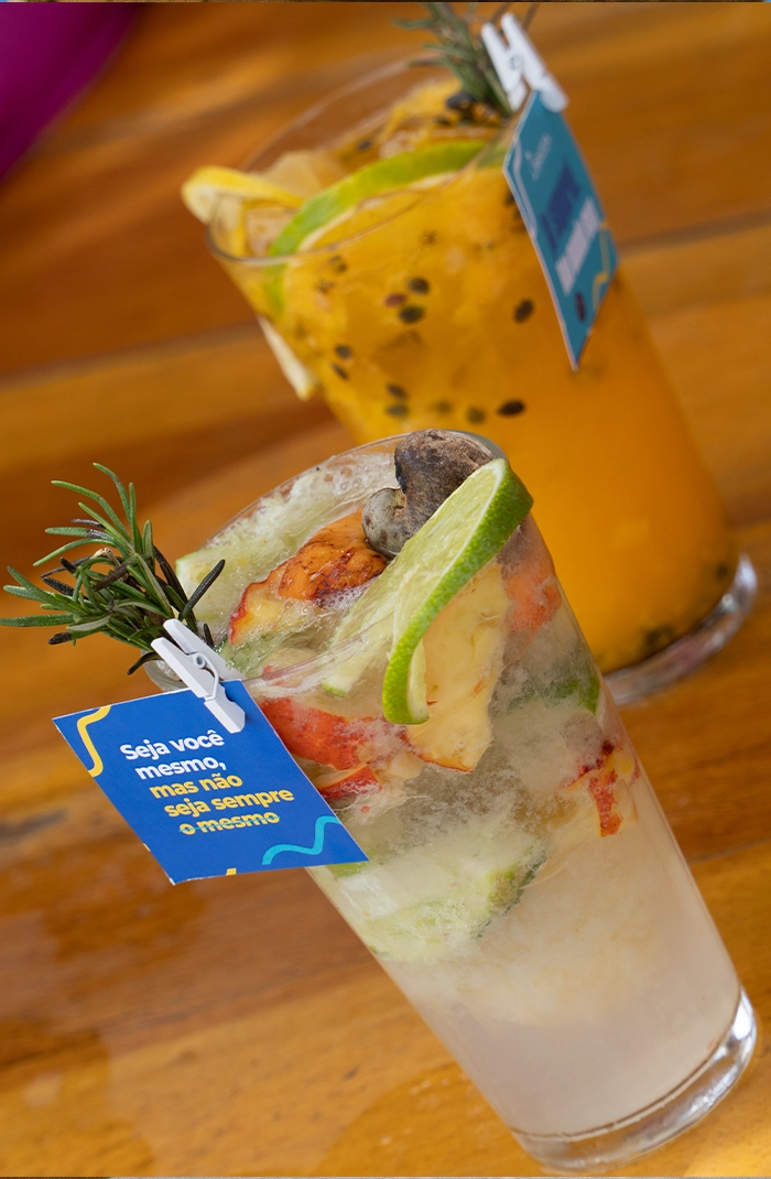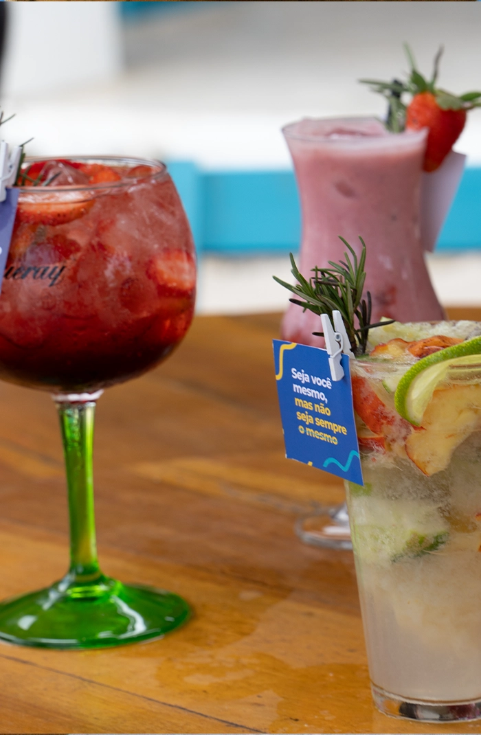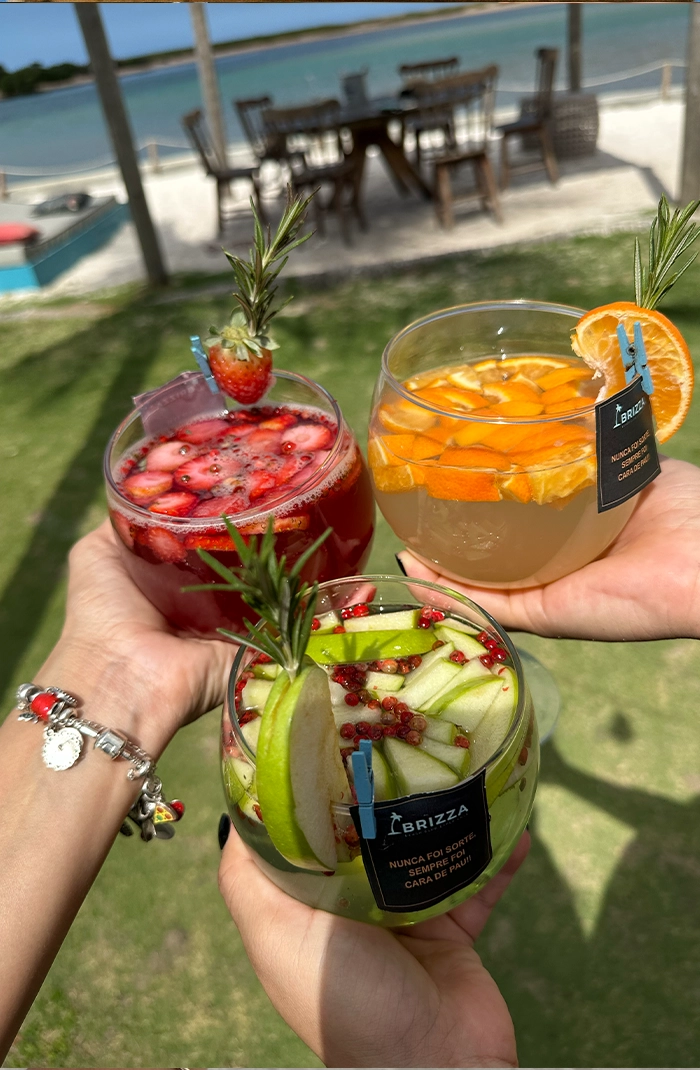 Entre um mergulho e outro, nada melhor do que relaxar à mesa com uma vista incrível da Praia de Buraquinho e brindar bons momentos com um drink especial.