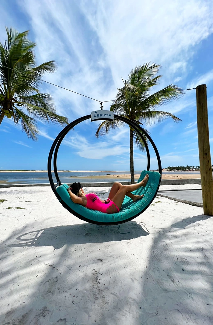 Para quem busca relaxar, o Brizza conta com um redário em meio ao verde e cantinhos aconchegantes espalhados pelo espaço. Perfeito para uma pausa à sombra ou até para tirar aquela soneca depois do almoço.