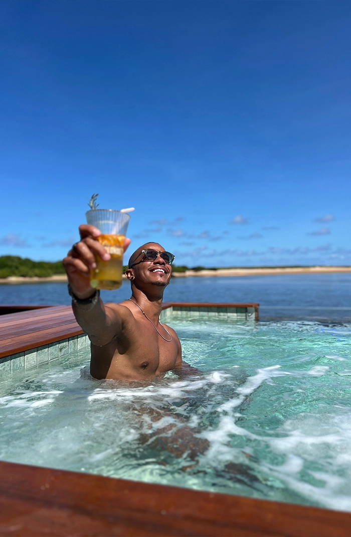 Um dos maiores encantos do Brizza é a localização única: entre o Rio Joanes e as águas tranquilas da Praia de Buraquinho. Aqui, você pode escolher se refrescar no mar, curtir o rio ou simplesmente relaxar apreciando a paisagem.